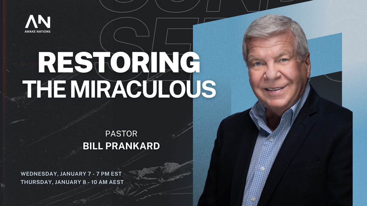 Join us for an online gathering with Pastor Bill Prankard, a renowned healing evangelist and one of God’s Generals, on January 7 at 7:00 p.m. EST (North America) or January 8 at 10:00 a.m. AEST (Brisbane, Australia). Equivalent times: Sydney/Melbourne 11:00 a.m. AEDT; Perth/Singapore 8:00 a.m.