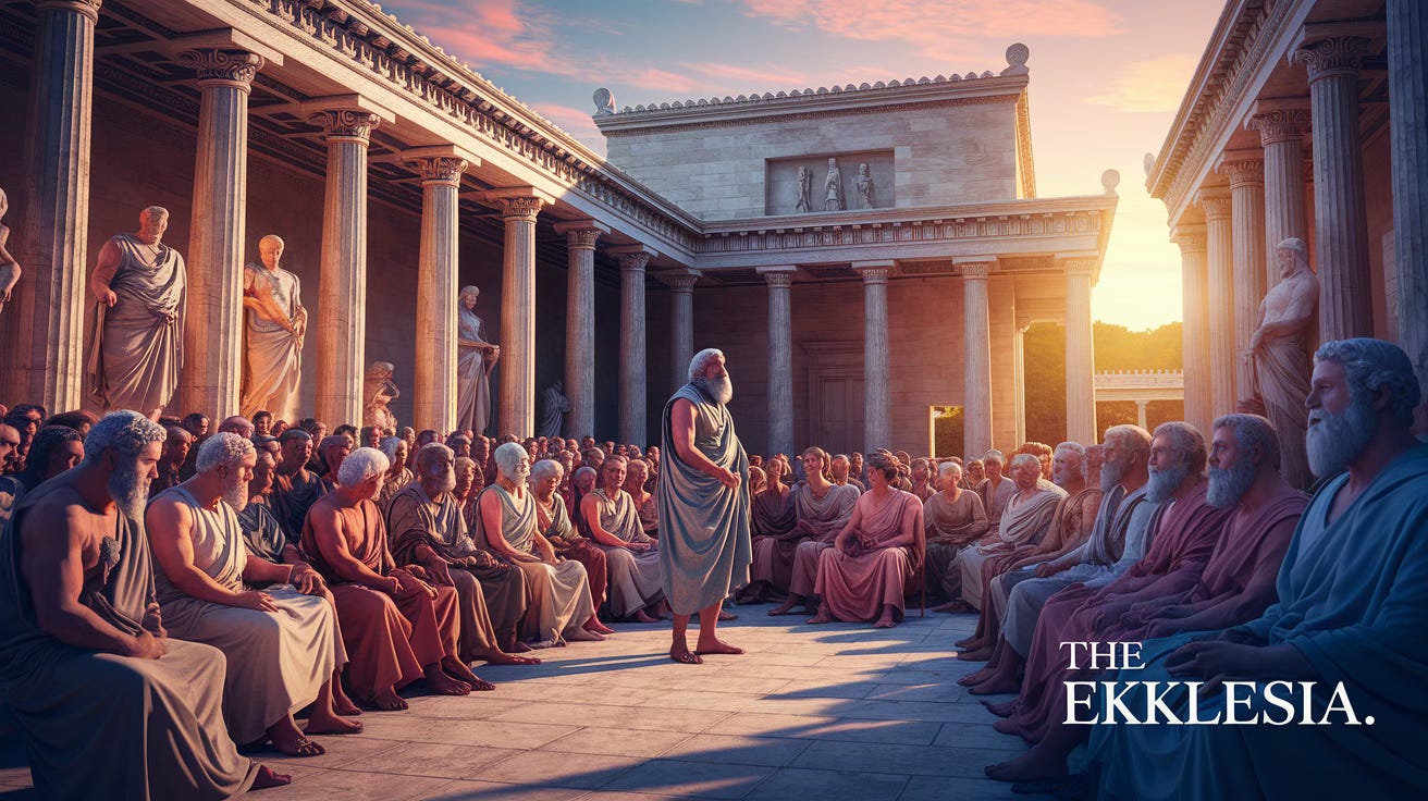 In Greek society, the ekklesia was recognized as the key to Athenian democracy—the regular gathering of male Athenian citizens to listen to, discuss, and vote on decrees that affected every aspect of life. It was not an abstract community but a physical gathering at a specific time and place with real responsibilities.