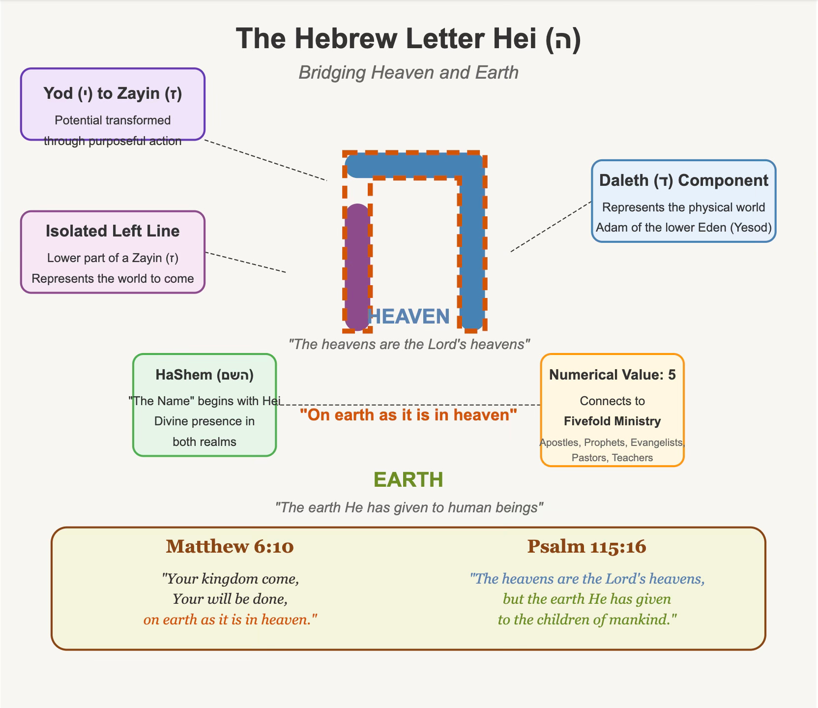 This theological understanding of five provides the perfect backdrop for understanding both the letter Hei and the fivefold ministry as divine mechanisms for connecting heaven and earth through covenant relationship.