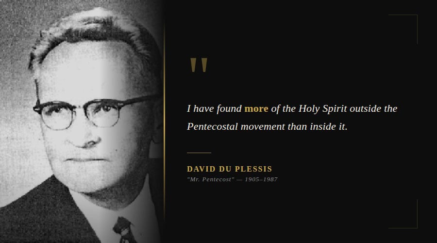 In the twentieth century, a South African Pentecostal named David du Plessis did something that cost him almost everything in his own community. Rather than writing off the mainline denominations as dead and beyond hope, he walked into them. He sat with Catholics; he engaged with Lutherans and Anglicans and Presbyterians. He brought the fire of the Spirit into rooms that had not seen it in generations, and he did it not with contempt for what those traditions were but with love for what they could become.